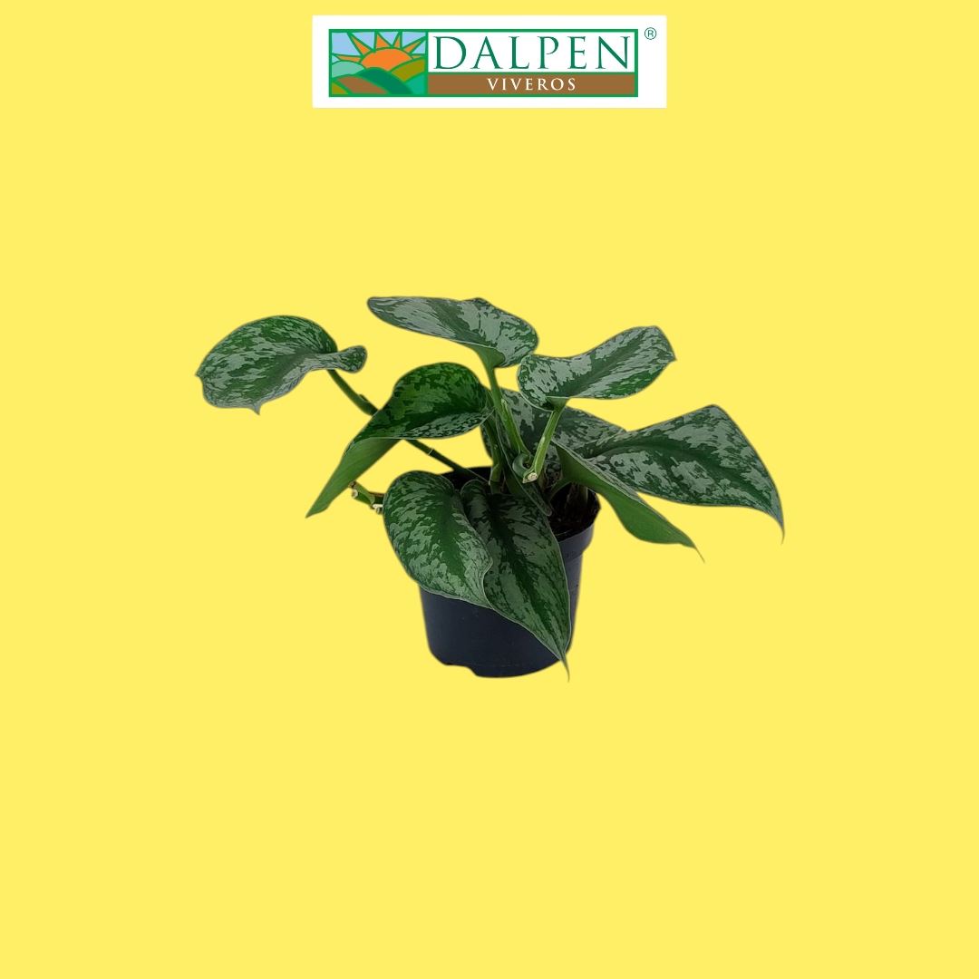 Características: Planta trepadora de interior. Hojas grandes y en forma de corazón, de color verde oscuro con manchas plateadas o grises.